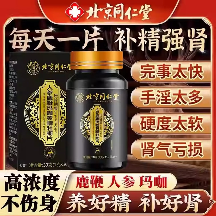 北京同仁堂 人参鹿鞭玛咖黄精牡蛎 男性滋补品鹿鞭片 增强免疫力、温补肾阳 30片/罐