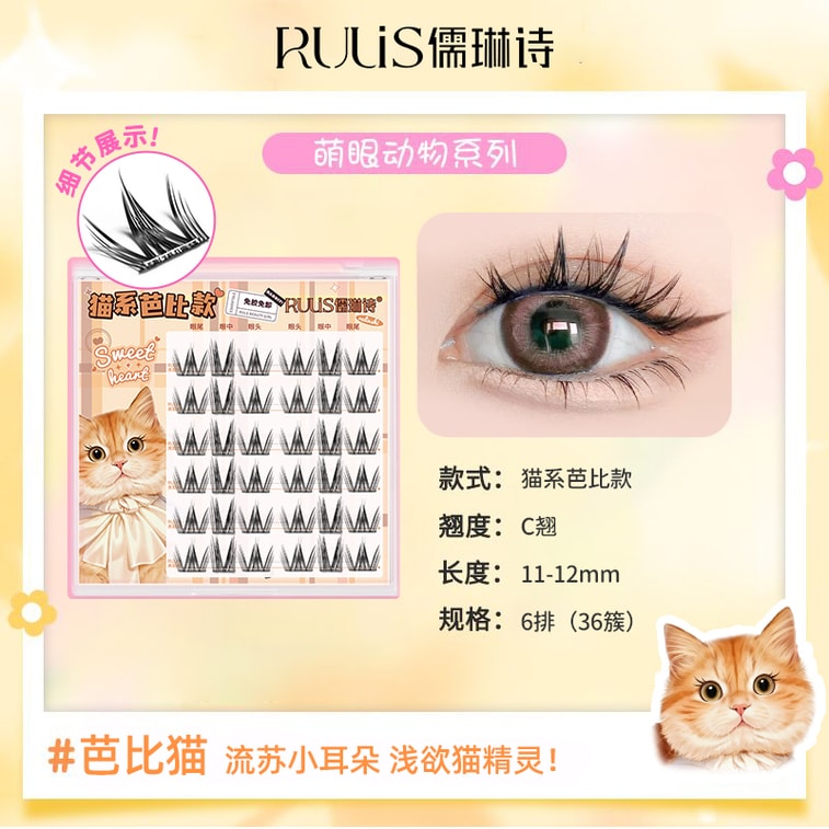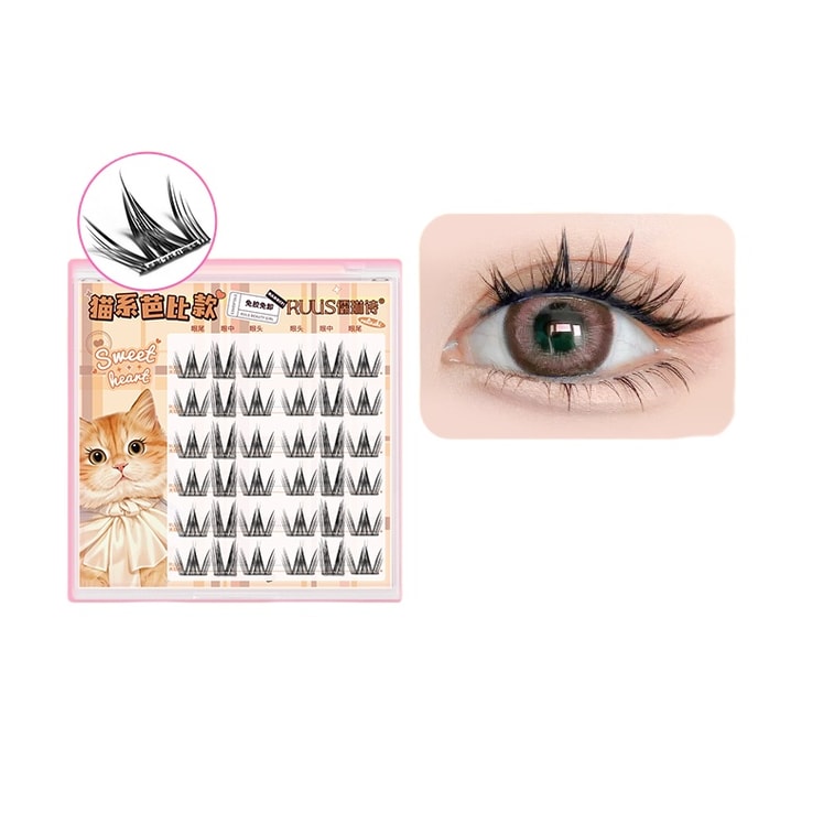 【中国直邮】 儒琳诗 免胶假睫毛 【可爱猫系假睫毛】 根根分明自然款眼睫毛 手残党新手友好 36簇*1盒