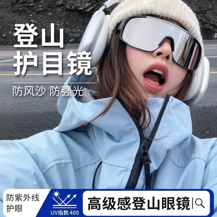 【中国直邮】 A1 中国 护目镜登山骑行滑雪爬山防风眼镜防沙户外徒步墨镜滑雪镜 白框水银片1副装