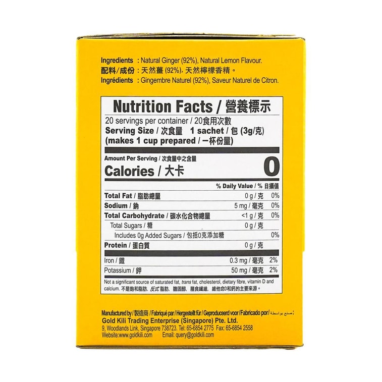 新加坡GOLDKILI金麒麟 天然柠檬姜茶 速溶暖身茶粉 20包 60g