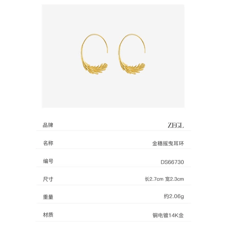 【中国直邮】 ZENGLIU 真柳女小众独特轻奢高级耳钉新款爆款设计感耳饰金穗摇曳耳环*1对