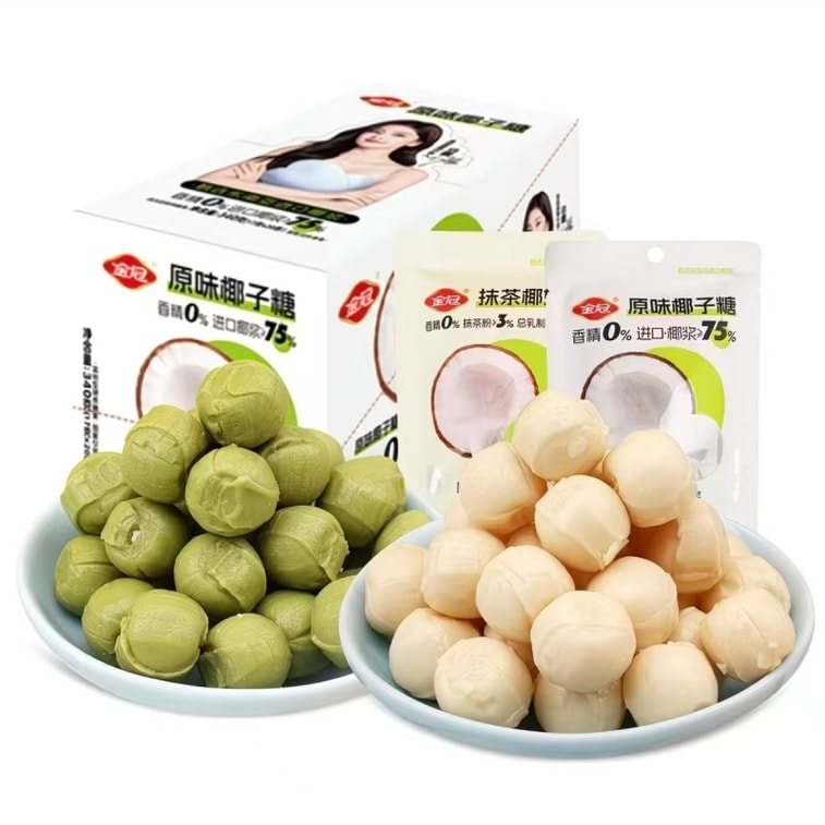 金冠 椰子糖夹心椰奶糖硬糖原味抹茶味糖果各三包17g*6包 | 亚米