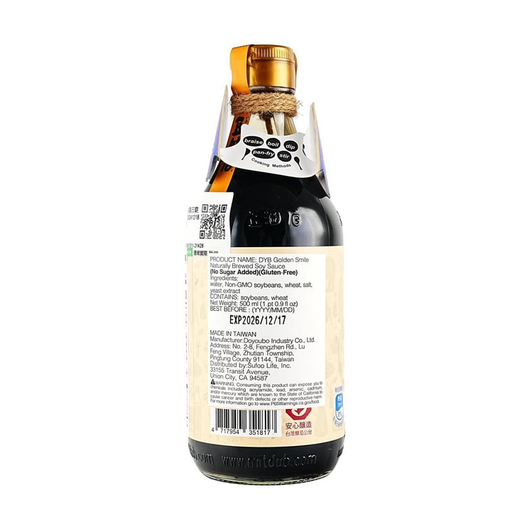 台湾豆油伯 金美满 无糖添加酿造酱油 500ml【0糖添加】