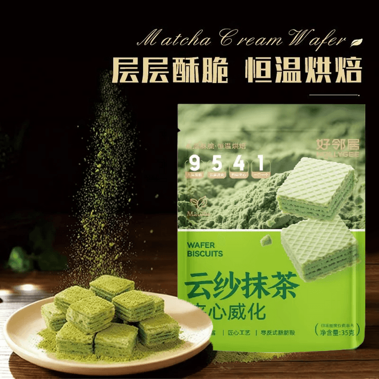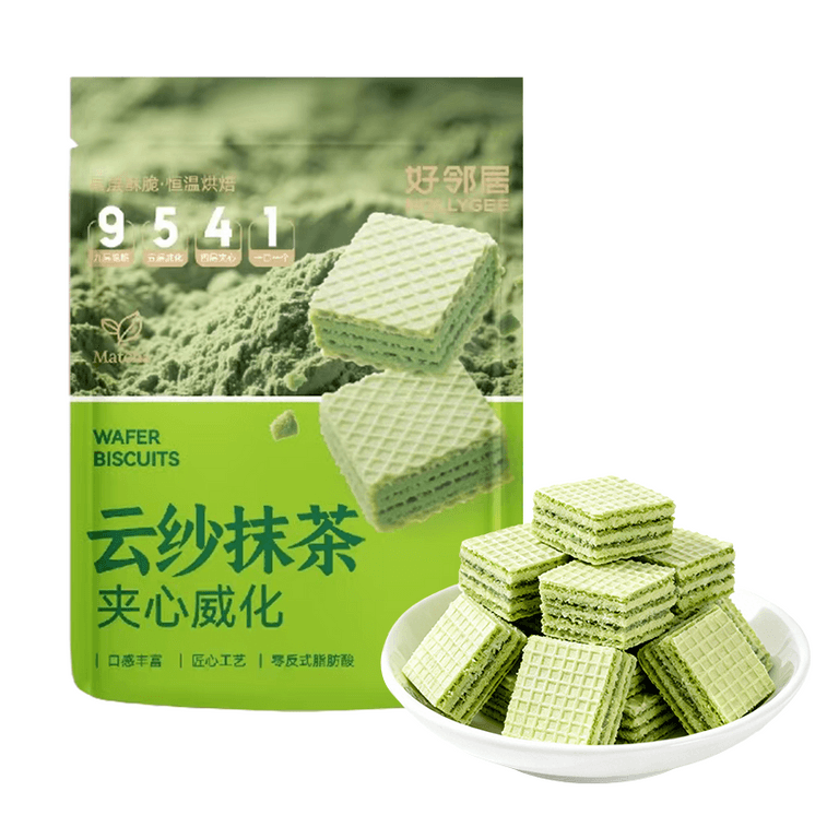 【中国直邮】 好邻居 夹心威化饼干抹茶味 35g*3袋