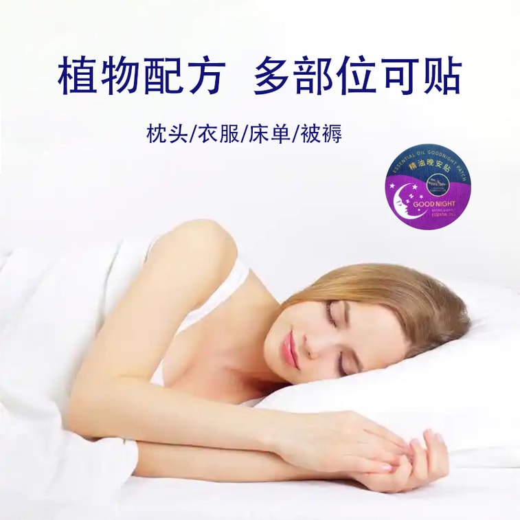 本品为外用助眠贴,核心添加薰衣草、洋甘菊、佛手柑等天然植物精油,无添加褪黑素、安眠药成分,温和不刺激,贴用方便,不会弄脏衣物或皮肤。
