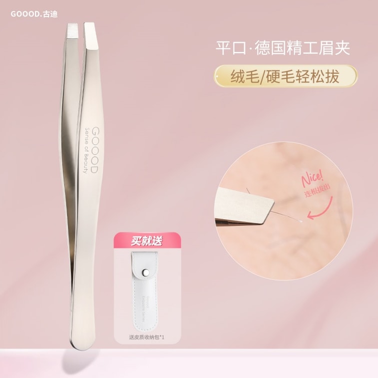 【中国直邮】 古迪 德国高精密眉毛夹 平口修眉拔毛钳 可拔胡子夹假睫毛 精工镊子 1 个装 | 亚米