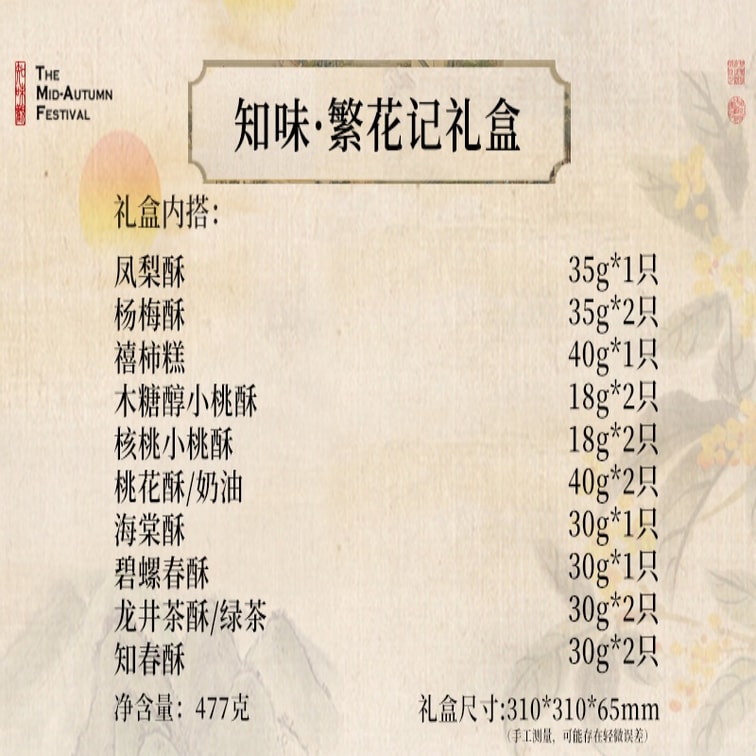 【中国直邮】 知味观 江南风味繁花记糕点礼盒 477g 凤梨酥桃酥杭州特产 佳节送礼臻选伴手礼