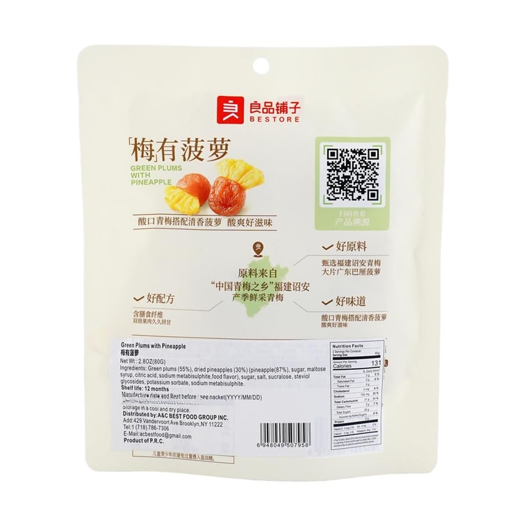 良品铺子 梅有菠萝 青梅菠萝水果干 80g【清新酸爽】