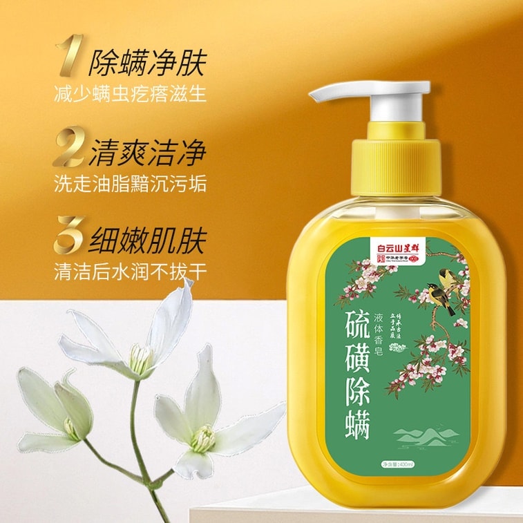 广药白云山 白云山 硫磺除螨液体香皂液 沐浴露 400ML 内衣裤洗涤 祛除背部痘痘 400ML