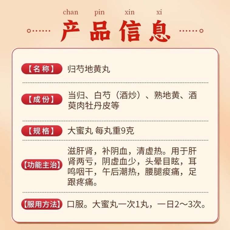 恒玉佳 归芍地黄丸9g*6丸/盒 正品补肝肾耳鸣虚热头晕阴血清虚中药的功效调理药大蜜丸(建议10盒一疗程)