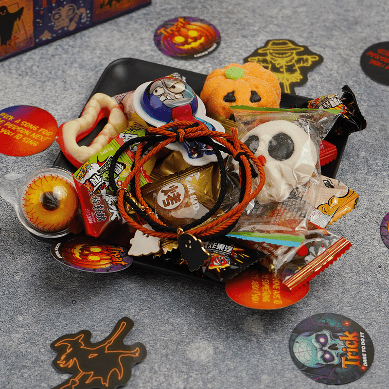 万圣节南瓜造型软糖,骷髅造型软糖,幽灵恶魔造型软糖,3D眼球造型软糖,3D牙齿造型软糖,爆炸汽水酸糖,爆浆陈皮软糖,话梅糖,烤蛋挞造型软糖,雪糕杯棉花糖,多口味水果糖等