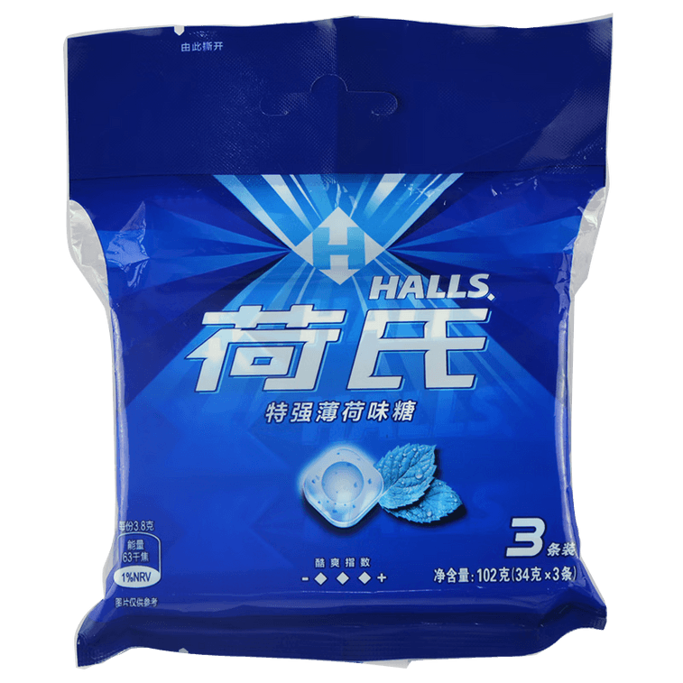 【中国直邮】 台湾 盛香珍 荷氏薄荷糖 特强薄荷午夜风暴味三条装102g 开车清爽糖果零食