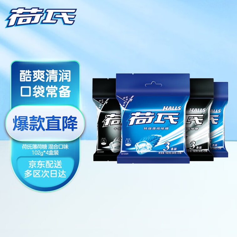 【中国直邮】 荷氏薄荷糖 特强薄荷午夜风暴味三条装102g 开车清爽糖果零食