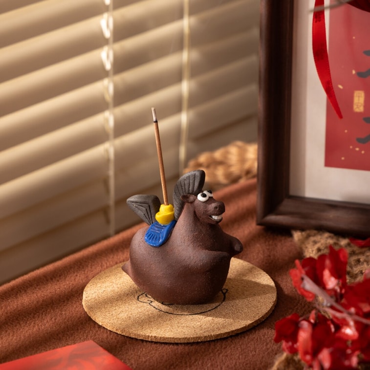 FuLau 福缭 【景德镇手工-马年新年香插-黑色】【马上有钱】【小众】陶瓷线香香插 1件