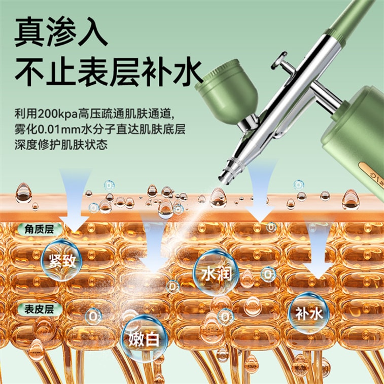 【中国直邮】康佳 便携手持注氧仪高压喷雾器纳米美容仪家用补水仪面部 绿色
