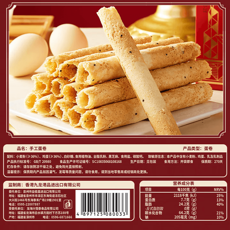 九龙港品 手工蛋卷116g 特色糕点芝麻鸡蛋卷香港特产零食小吃伴手礼