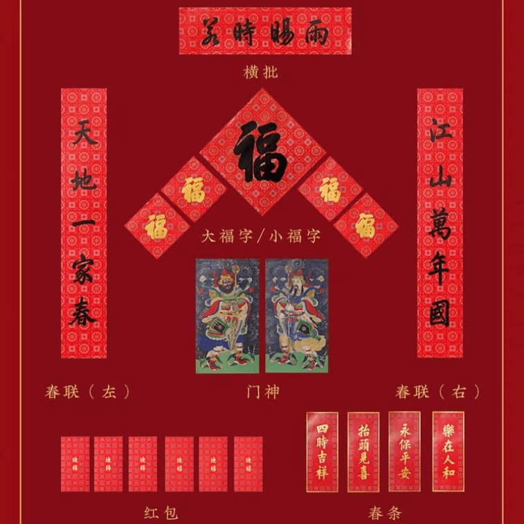 【中国直邮】 故宫博物院 宫中有礼新年礼盒 春节春联福字红包窗花门神 28.5*6.7*33厘米