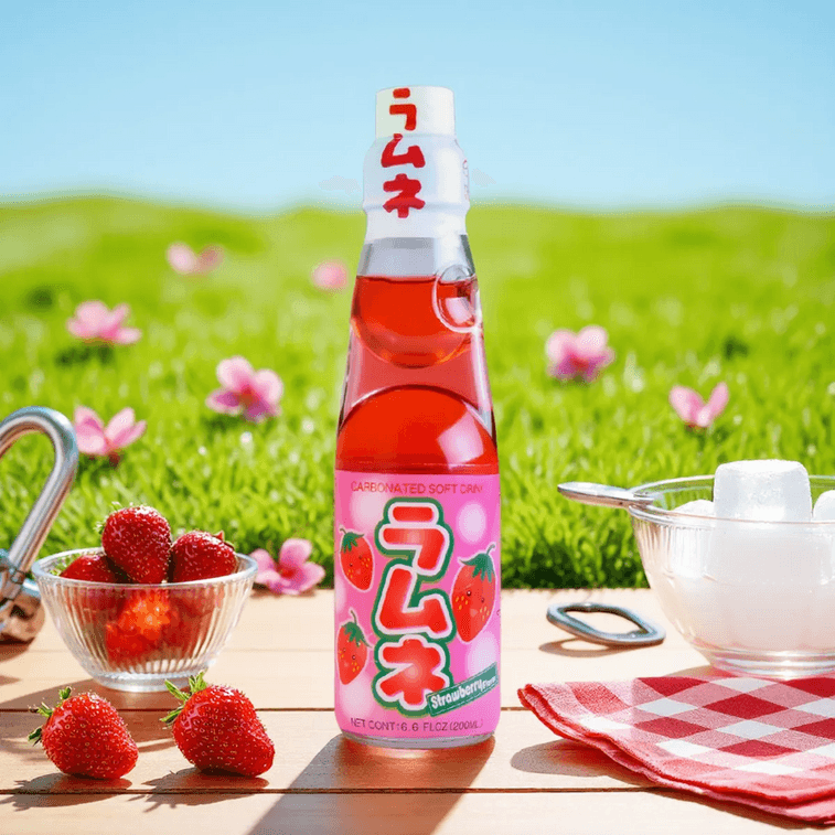 日本HATAKOSEN RAMUNE 弹珠汽水 草莓味 200ml