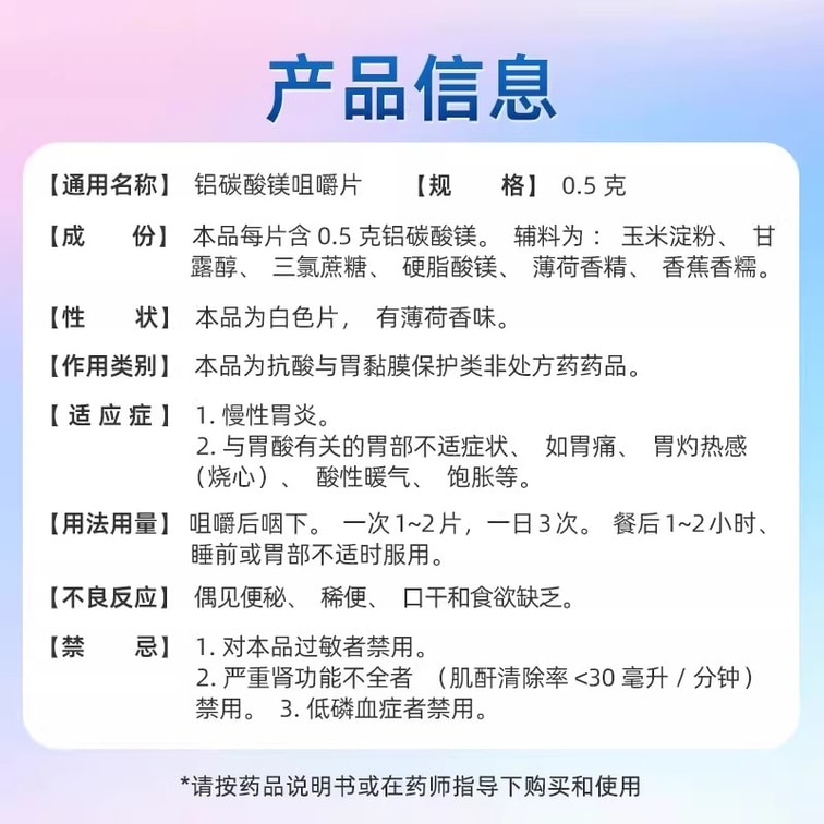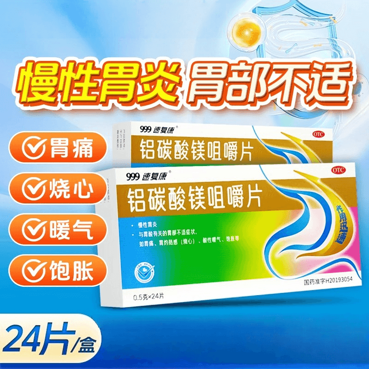 铝碳酸镁咀嚼片24片 胃药 快速中和胃酸 缓解胃痛饱胀 烧心嗳气
