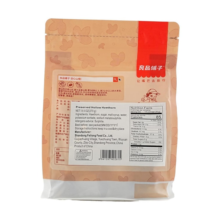 良品铺子 空心山楂 270g【无添加山楂球蜜饯果脯】