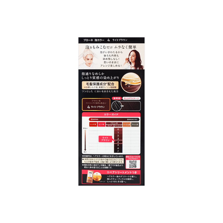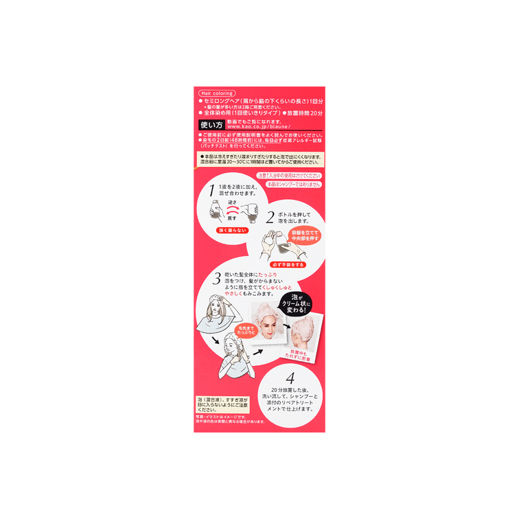 日本KAO花王 白发专用植物染发泡沫染发剂 DIY遮白发染发膏 4号自然棕色 108ml 附染发工具
