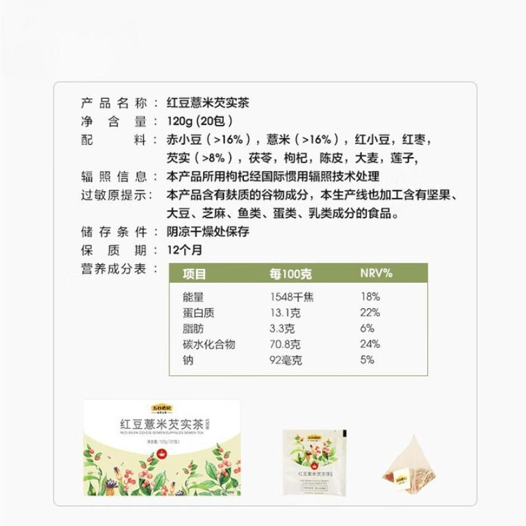 【中国直邮】 五谷磨房 养生红豆薏米芡实茶120g*1盒