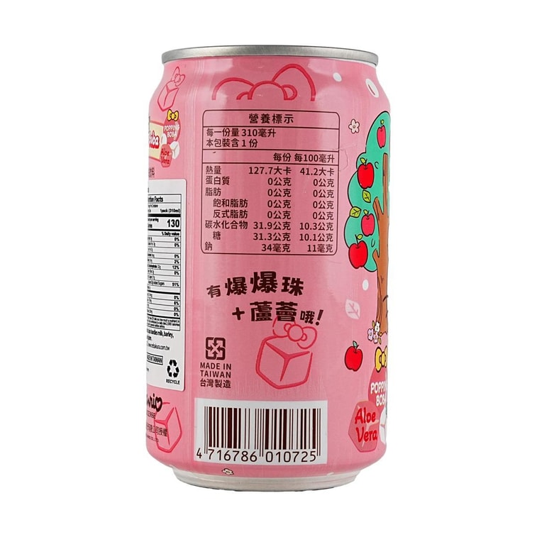 台湾红樱花x三丽鸥 HELLO KITTY 苹果芦荟波霸爆爆珠饮料 310ml