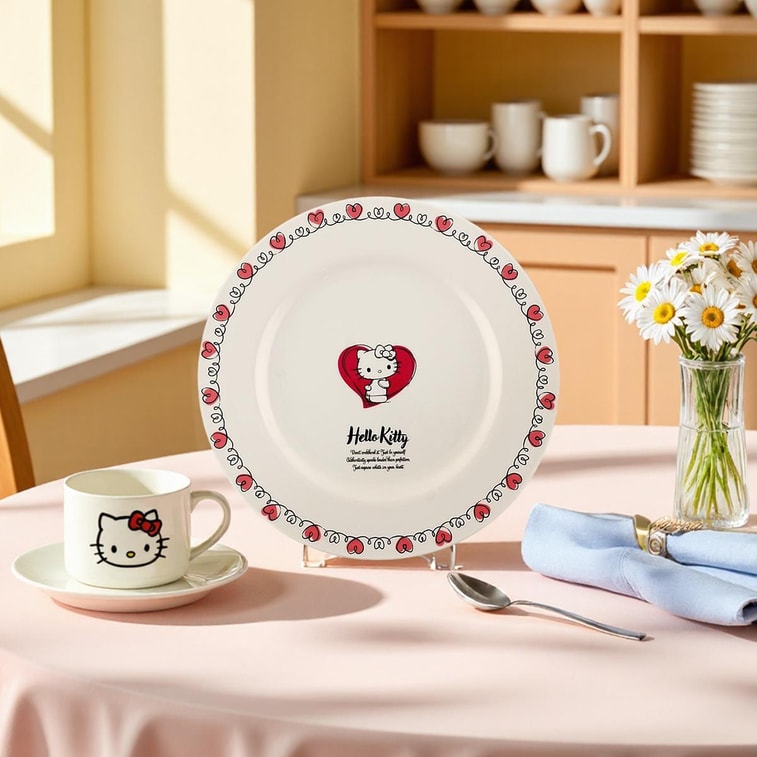 日本SKATER斯凯达 Hello Kitty 手绘风盘子 陶瓷餐具菜盘 23cm