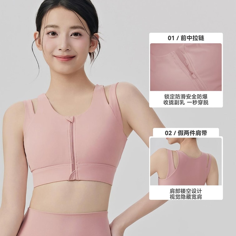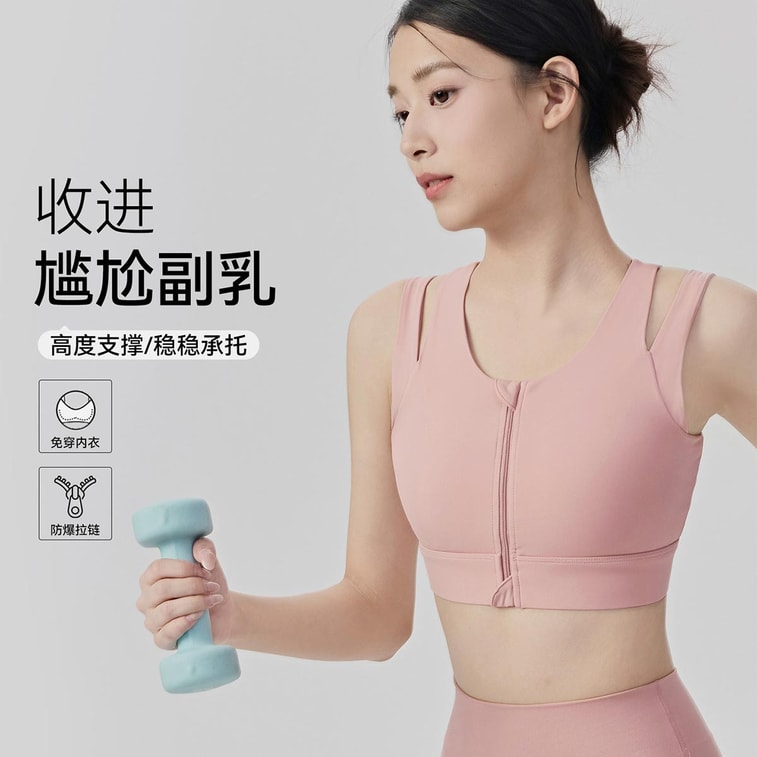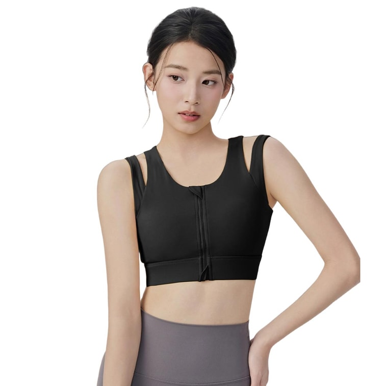 【中国直邮】 HSPM 高强度运动内衣 固定杯拉链款 跑步防震瑜伽文胸 训练健身背心 黑色 L码 1件