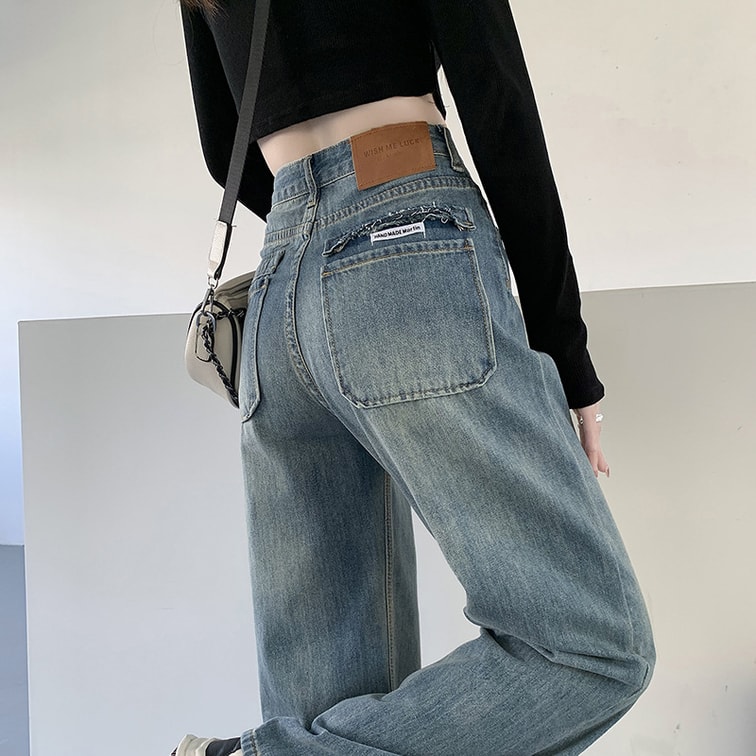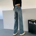 【中国直邮】 奢笛熊 高腰直筒宽松显瘦垂感牛仔裤 蓝色九分 M