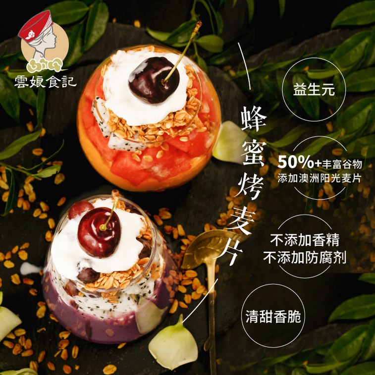 【中国直邮】 云娘食记 蜂蜜纯麦片 烘焙椰子油谷物健身代餐隔夜麦片 即食酸奶干吃酸奶碗配料 280g【香酥清甜 低卡果糖 健康无负担】