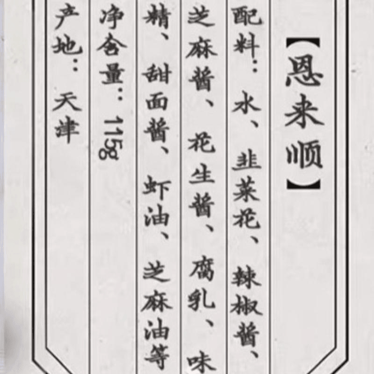 恩来顺 火锅芝麻酱花生酱铜锅涮小料酱料辣味115g*1袋