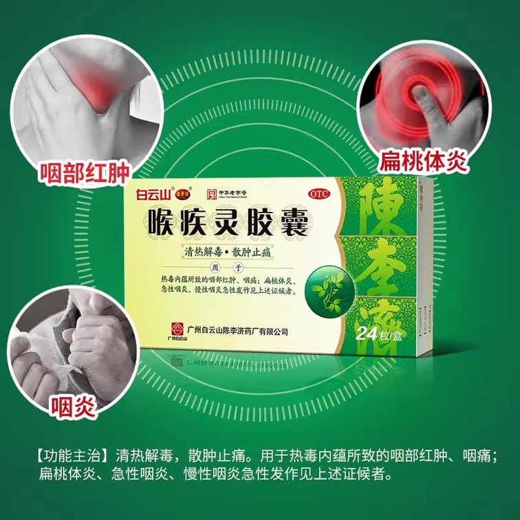 | 功能主治 | 治疗喉咙痛咽喉炎慢性咽炎扁桃体肿大 |