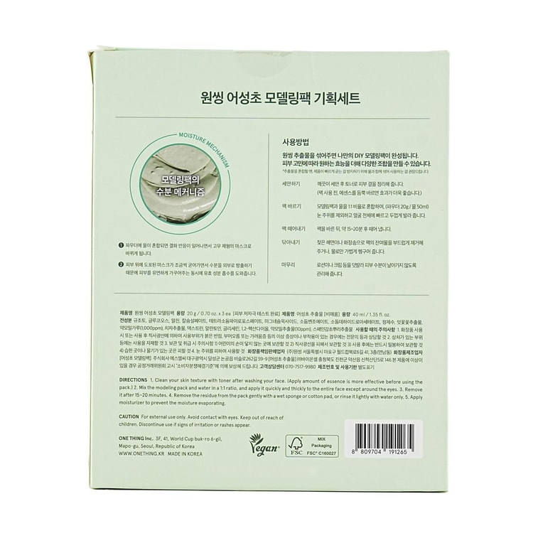 韩国ONETHING原新 鱼腥草软膜泥膜面膜粉 水分炸弹 保湿镇定舒缓 收毛孔清洁紧致 20g*3 + 鱼腥草爽肤水 40ml【超值装】