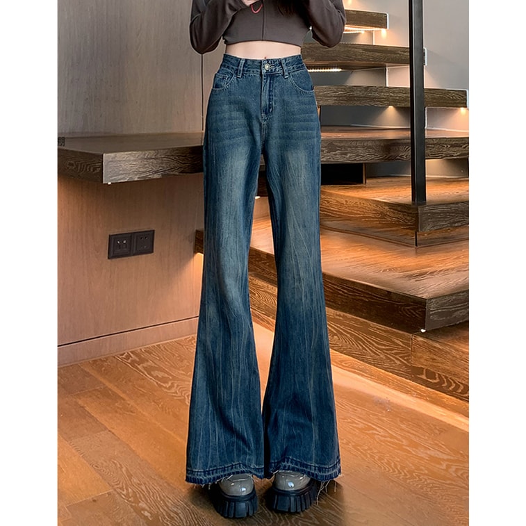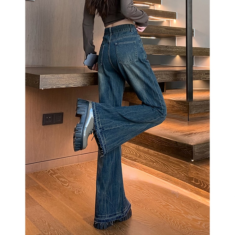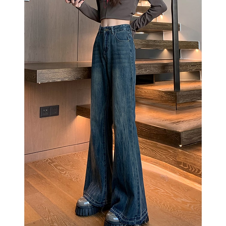 【中国直邮】HSPM 新款高腰显瘦阔腿微喇牛仔裤 复古蓝 S