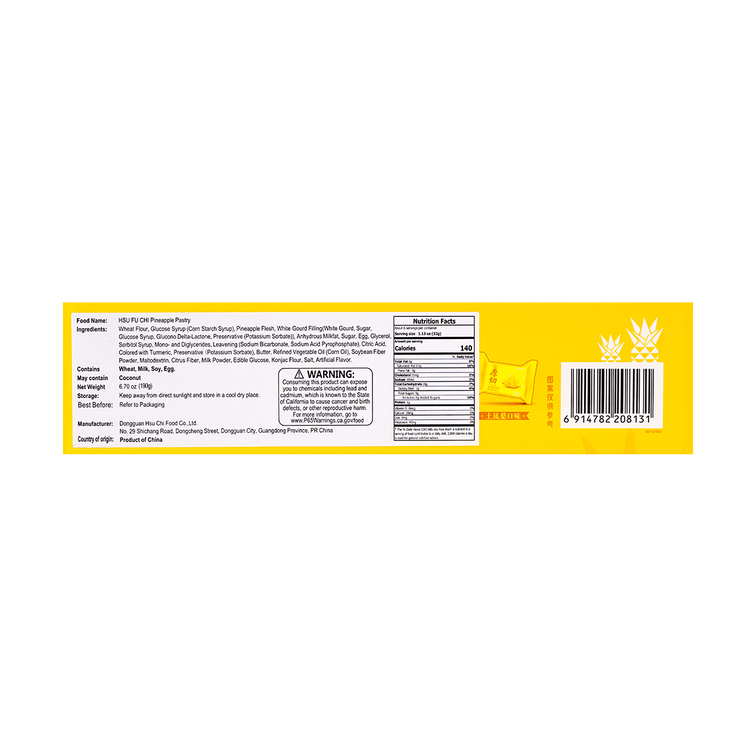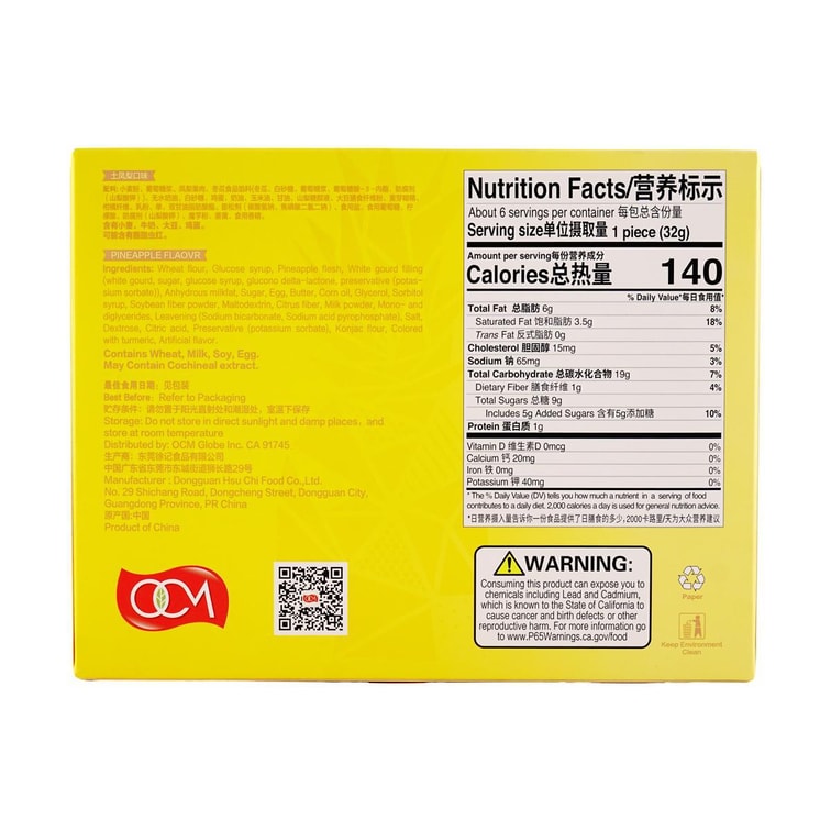 | 原料成分 | 鸡蛋、小麦粉、凤梨、白砂糖等。 |