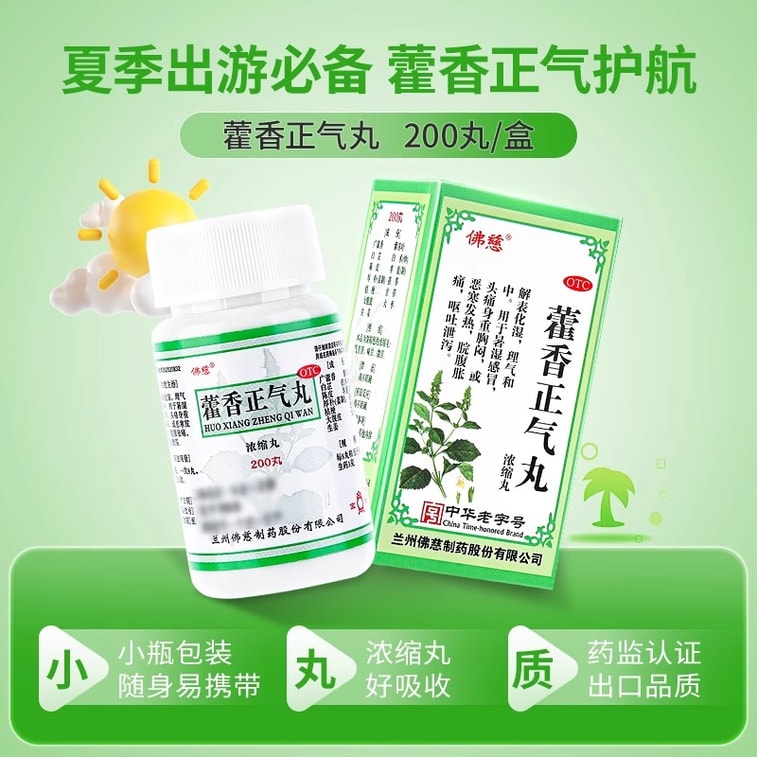 【中国直邮】 佛慈 藿香正气丸浓缩丸 感冒发热头痛身重呕吐泄泻胸闷防暑防中暑药200丸/盒