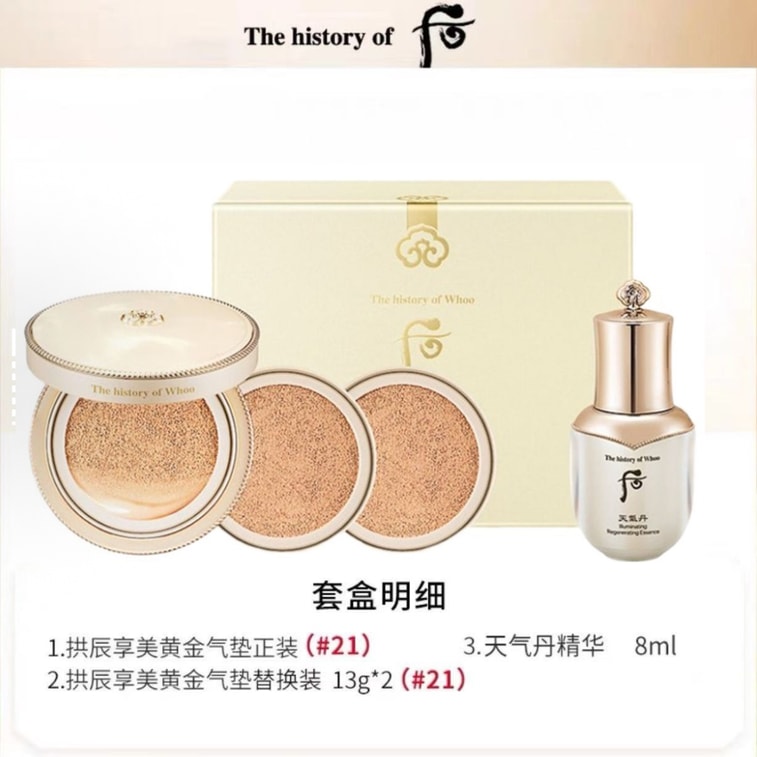 【香港直邮】 韩国 THE HISTORY OF WHOO 后 奢华黄金皇后气垫套装(21号色 象牙白)【正装+替换装x2+黄金安瓶8ml】