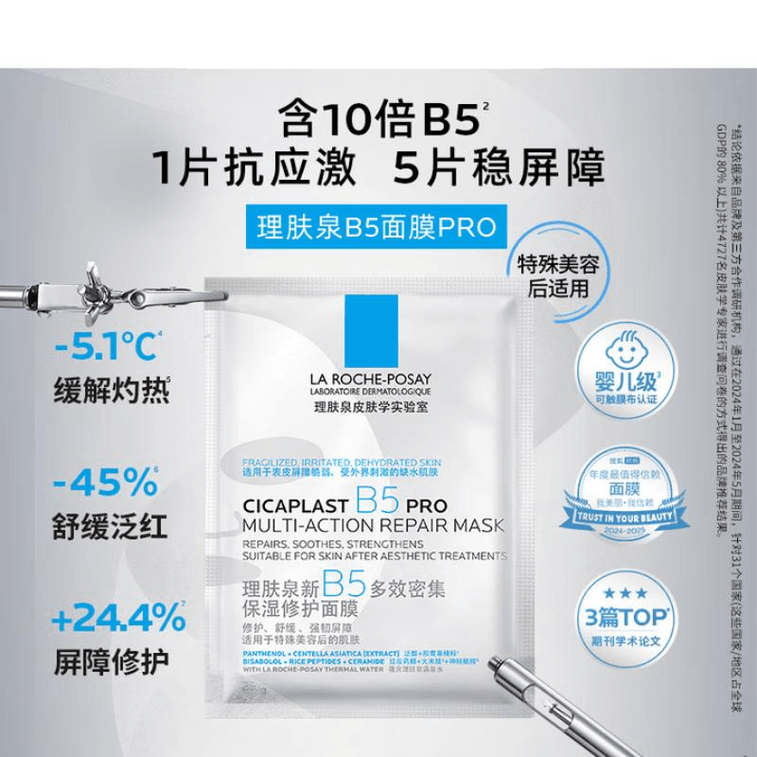 【中国直邮】 理肤泉 补水保湿紧急修护舒缓B5面膜PRO25g*5片