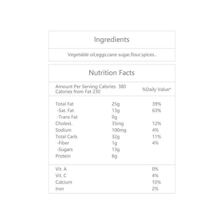 | 原料成分 | 小麦粉,白砂糖,植物油等。 |