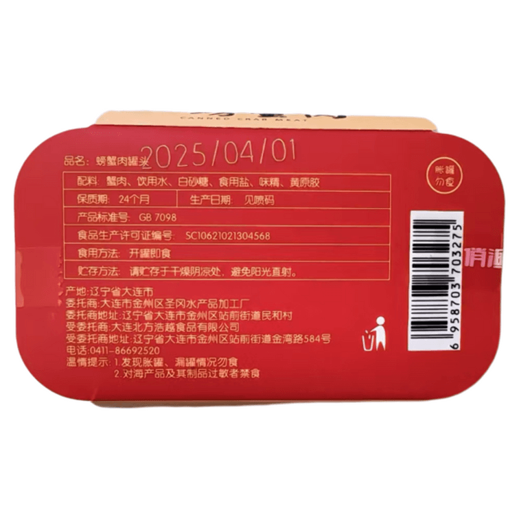 日本 俏鱼匠 即食蟹肉罐头海鲜螃蟹肉柳大连特产蟹肉下饭菜熟食 80g*1罐