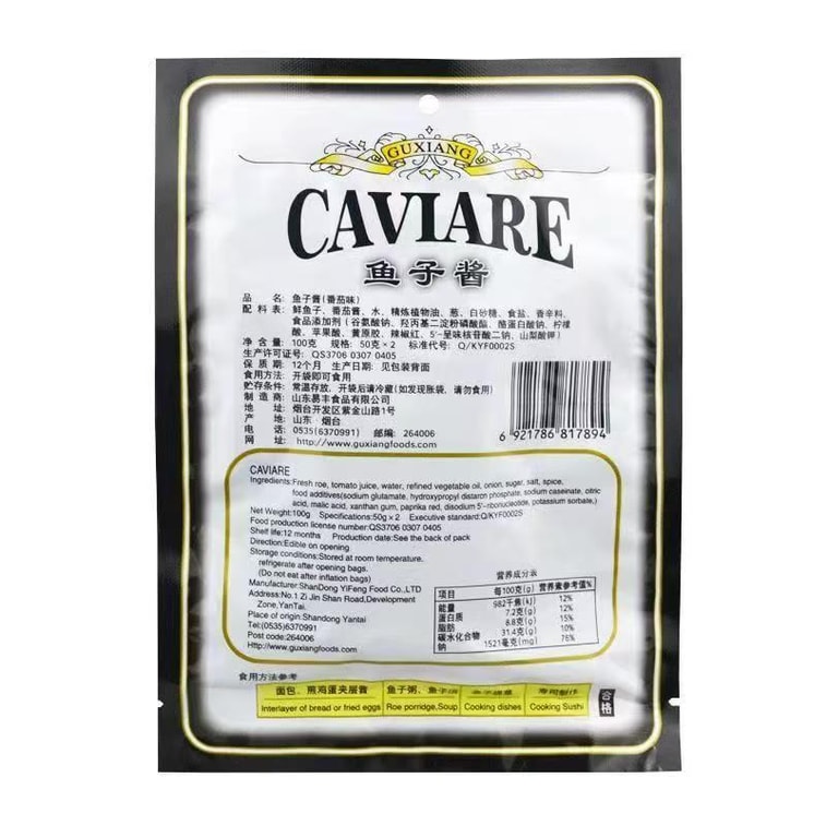 姑香 鱼子酱即食番茄味寿司鱼籽酱【内5小包】75克*1包 | 亚米