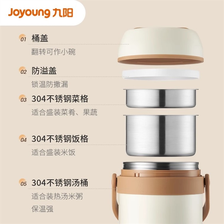 【中国直邮】 九阳 保温饭盒保温桶上班族学生超长保温大容量多层不锈钢便当餐盒 1.8L【一体三层分装】白色