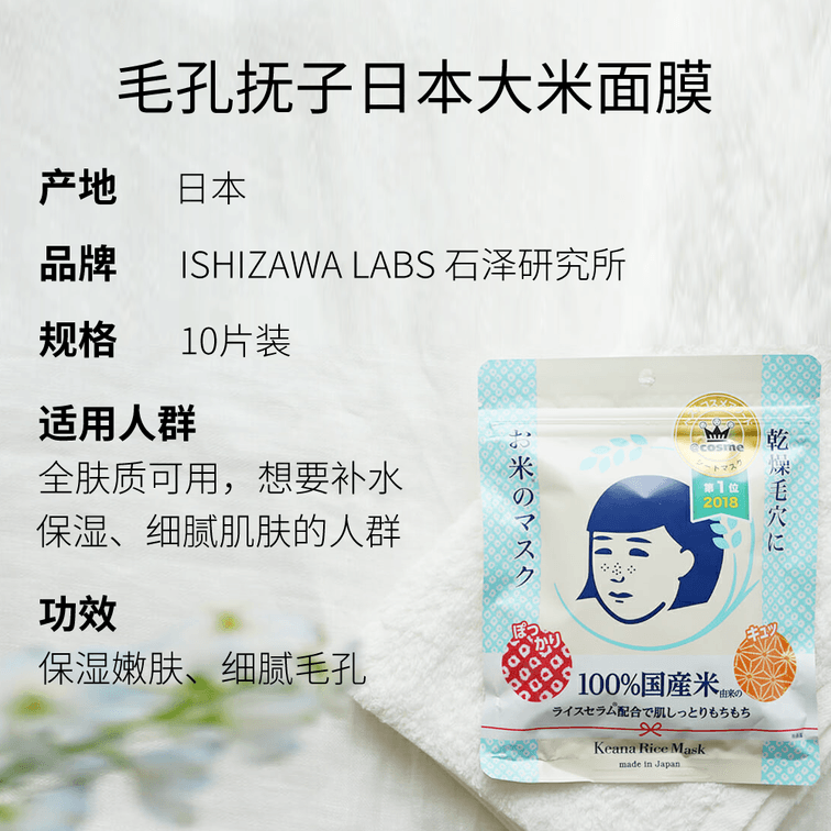 ISHIZAWA LABS 石泽研究所||毛孔抚子日本大米面膜||10片