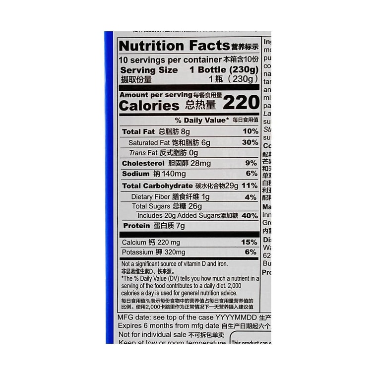 伊利 安慕希 高端畅饮型 芒果百香果味 230g*10瓶 【整箱10瓶装】