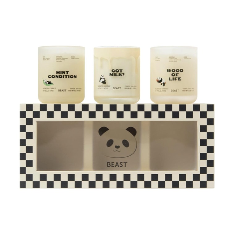 THE BEAST野兽派 熊猫噗噗香氛蜡烛 大豆蜡香薰礼盒礼物 三姐妹 愈创木/薄荷新生/苹苹奶