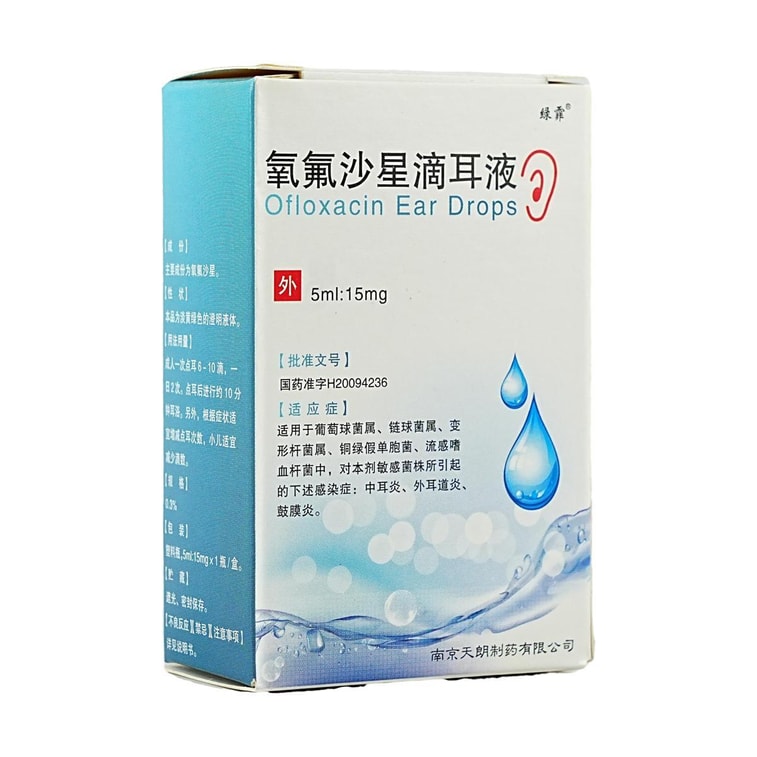 绿霏 氧氟沙星滴耳液 5ml 中耳炎外耳道炎鼓膜炎