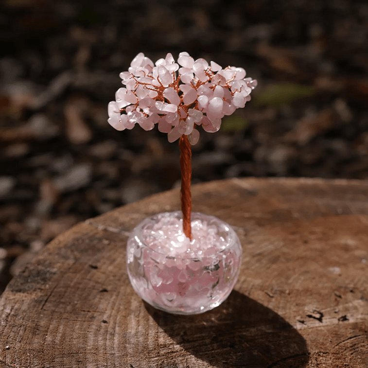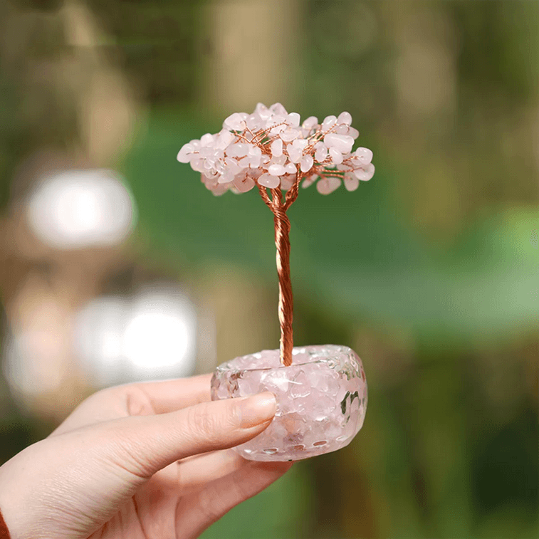 灵隐祈福 发财树桌面摆件黄水晶招财风水玄关摆件 粉水晶款