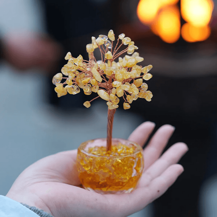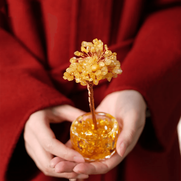 灵隐祈福 发财树桌面摆件黄水晶招财风水玄关摆件 黄水晶款