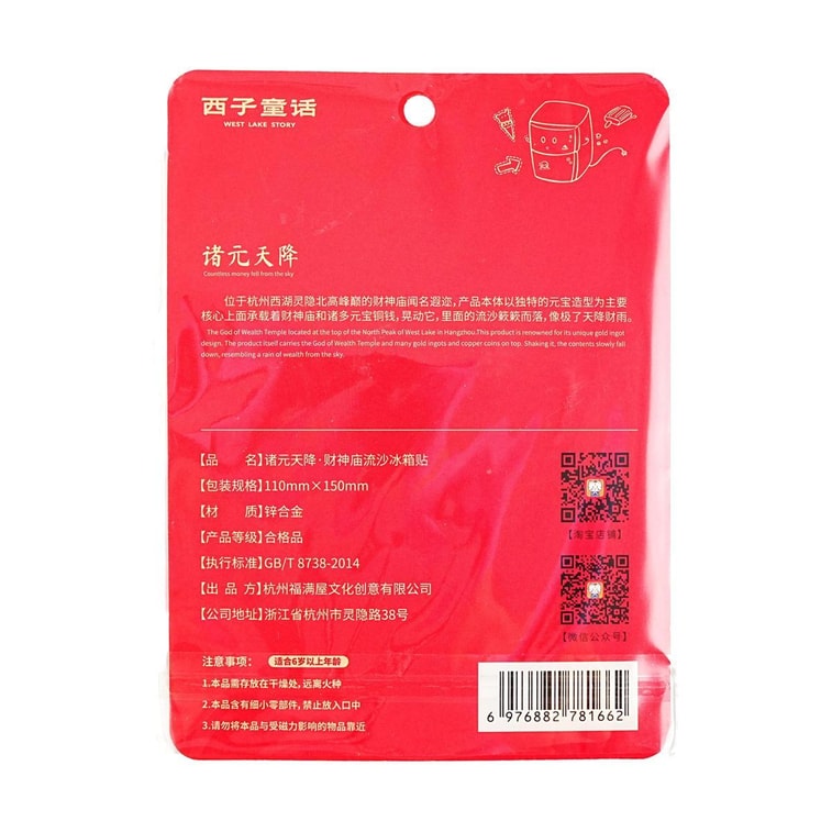 灵隐祈福 诸元天降财神 流沙冰箱贴 招财吉祥文创贴摆件装饰